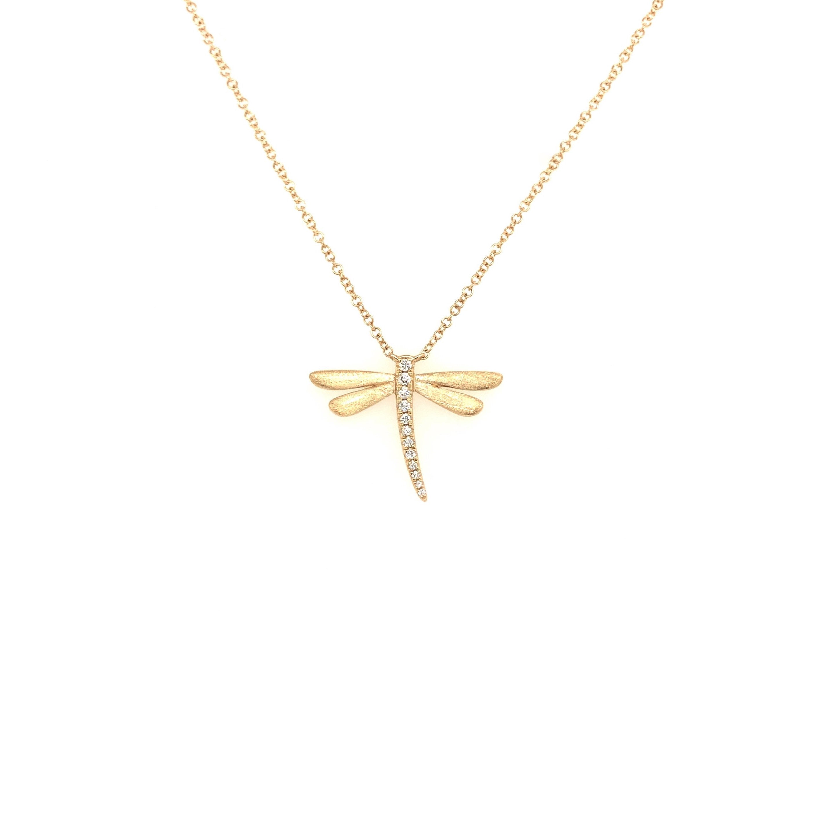 Satin-Winged Diamond Dragonfly Pendant in 14K Yellow Gold