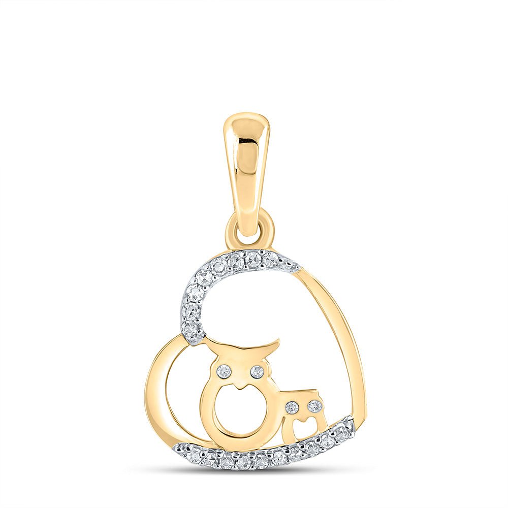 10kt Yellow Gold Women's Round Diamond Owl Heart Pendant (1/12 Cttw)