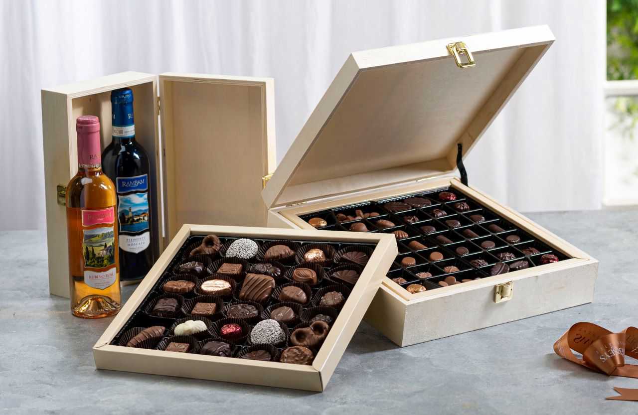 Designer Wood Chocolate Tray & Wine Gift Set
