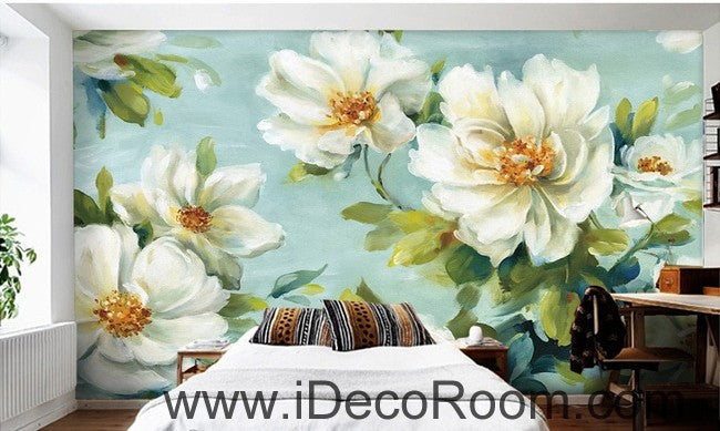 Vintage White Camellia Flower Wallpaper - Wall Decals, Art Print, Home Decor Gift