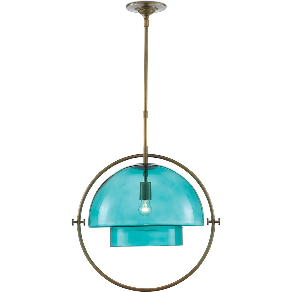 Astrid Pendant - Antique Brass and Aqua Finish Metal/Glass Light Fixture