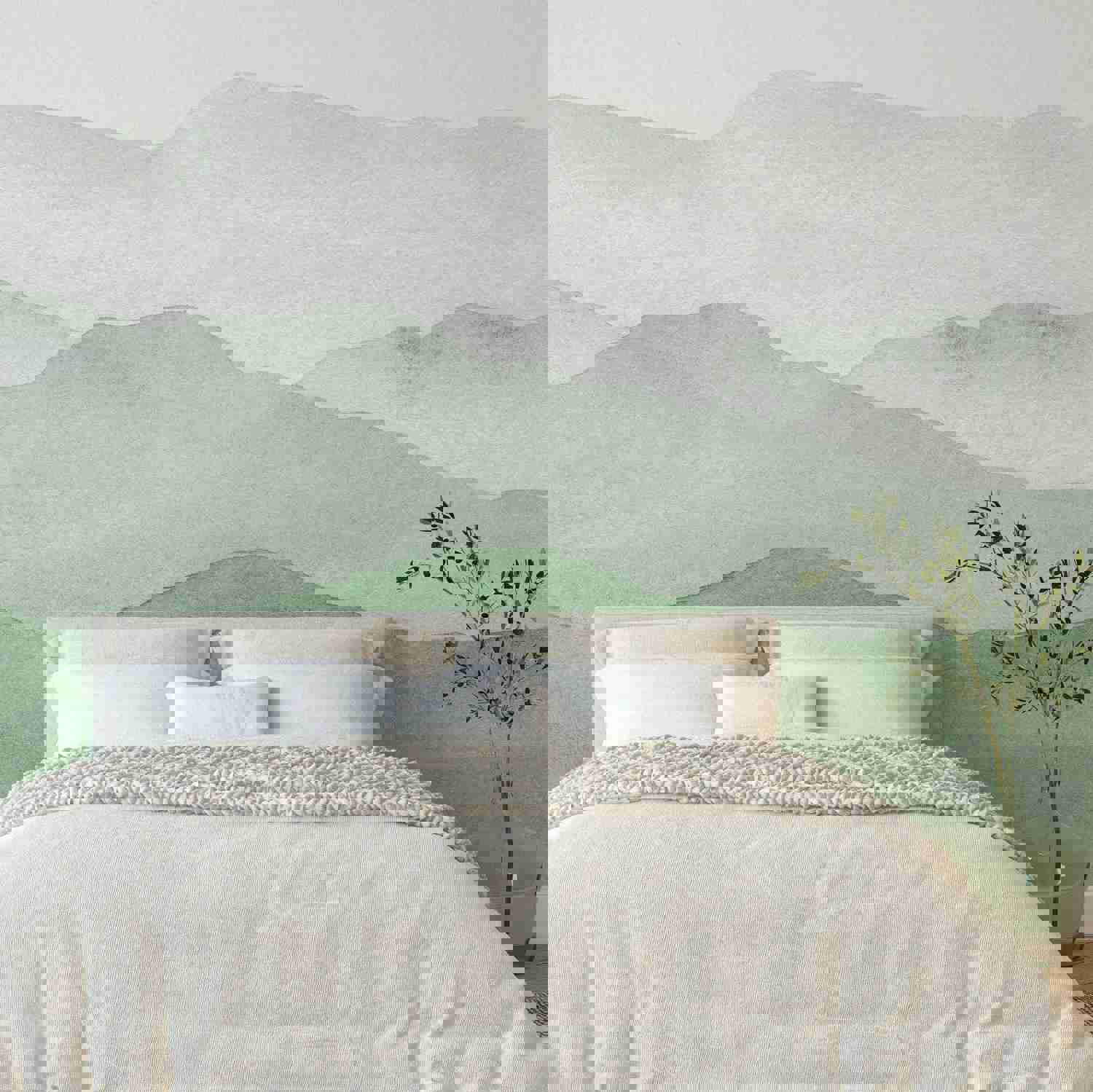 Watercolor Green Abstract Mountains Mural Wall Decal