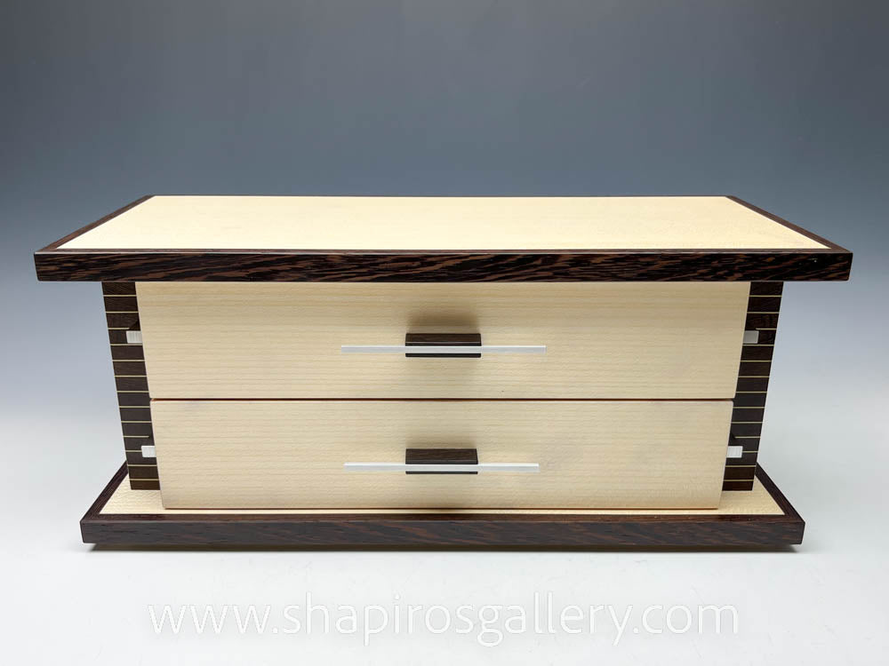 2 Drawer Handmade Wood Watch Box - English Sycamore, Wenge, Maple, MDF & Aluminum