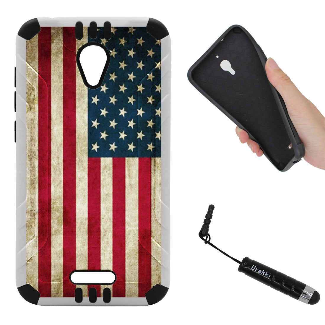 URAKKI Hybrid Rugged Armor Cover Case for Alcatel idealXCITE (2017) - Vintage American Flag Design