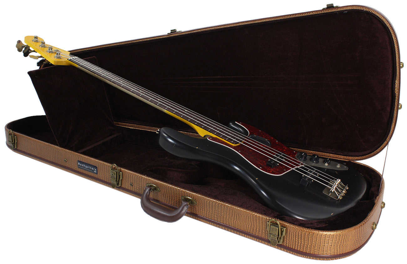 Nash JB-63 Bass Guitar, Black, Tortoise Shell, Light Aging