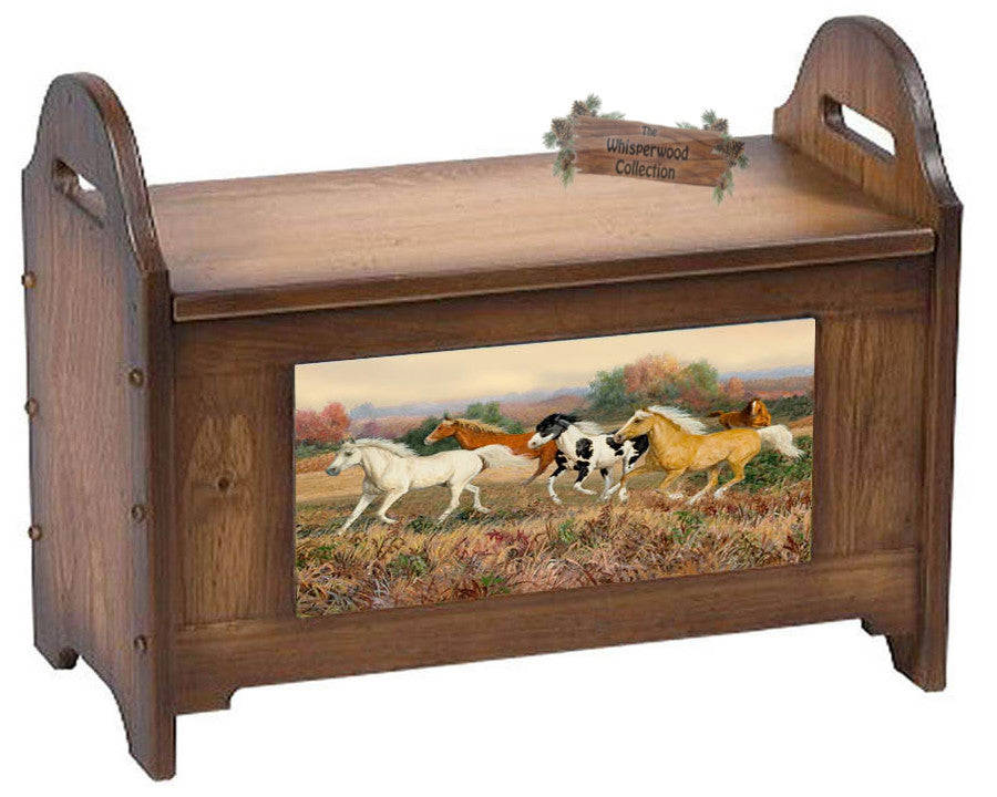 Handcrafted Pine Storage Boot Bench with Custom Artwork