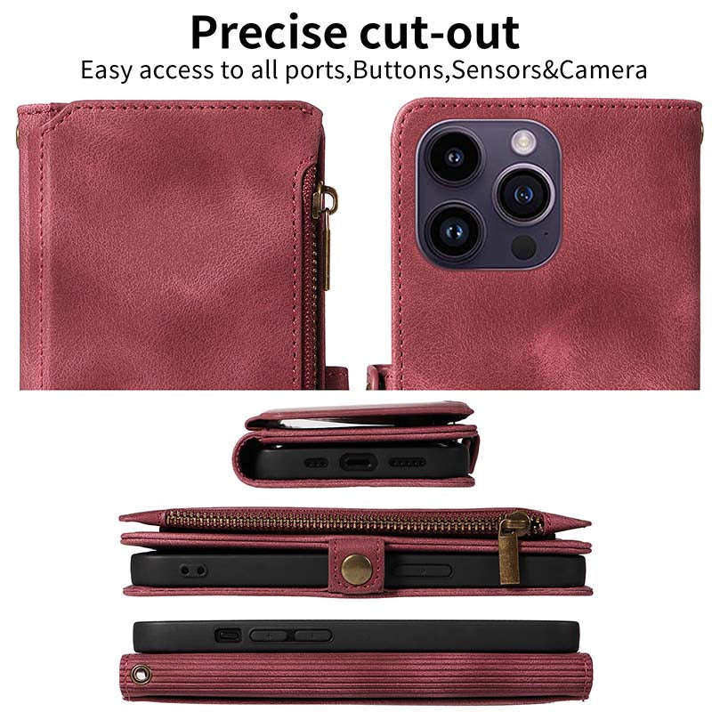 Casekis Zipper RFID Wallet Phone Case Red Wine