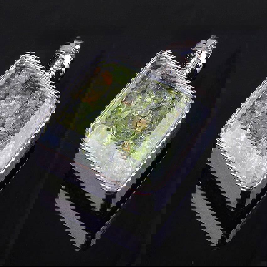 Natural Gnergy Gemstone Silver Plated Square Shape Wish Bottle Green Olivine Stone Pendant Jewelry