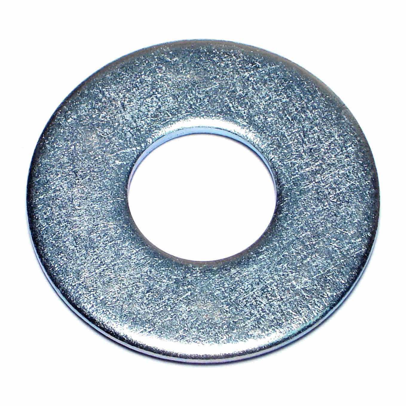 Diameter: 5/16Diameter 2: 9/16Thickness: 1/16Material: SteelFinish: ChromeThread Type: ANHardness: Grade 2Nominal Size: 5/16Style: ANType: Flat WasherBox of 10.A flat washer is a thin, usually round, plate with a hole in the middle that is normally used to distribute the load of a threaded fastener. USS flat washers have a large, wider body. SAE flat washers are machined to a tighter specification and have a smaller outside diameter.