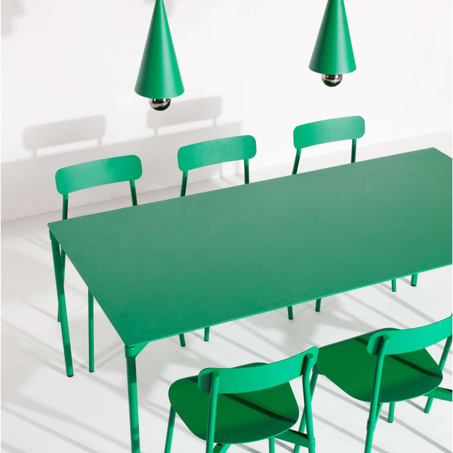 DescriptionAn outdoor version in the Aluminum Table System series features angled pipe legs paired with the signature featherweight but remarkable strong tabletop in ultra-thin aluminum honeycomb. Japanese designer Keiji Takeuchi exploits the precise technology of the airplane-graded material by anodizing the entire top panel after machining for an appealing shine. In silver or black finish with contrasting or matching elements, the table has a simple screw-in construction for easy DIY assembly.SpecificationsSizeSmall: 28.7 h x 78.7 w x 36.2