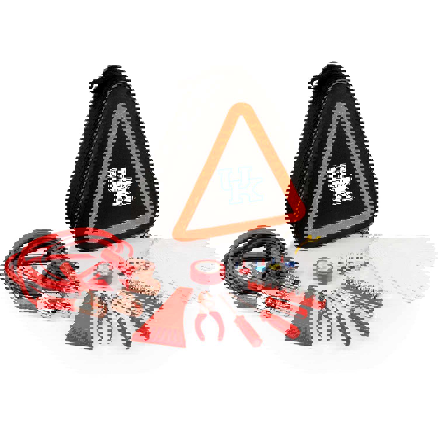 Safety first for you and your loved ones with the Picnic Time Roadside Emergency Kit, a compact car tool kit with the basics for auto emergencies. The triangular-shaped tote is lined with reflective tape to double as a roadside hazard sign.