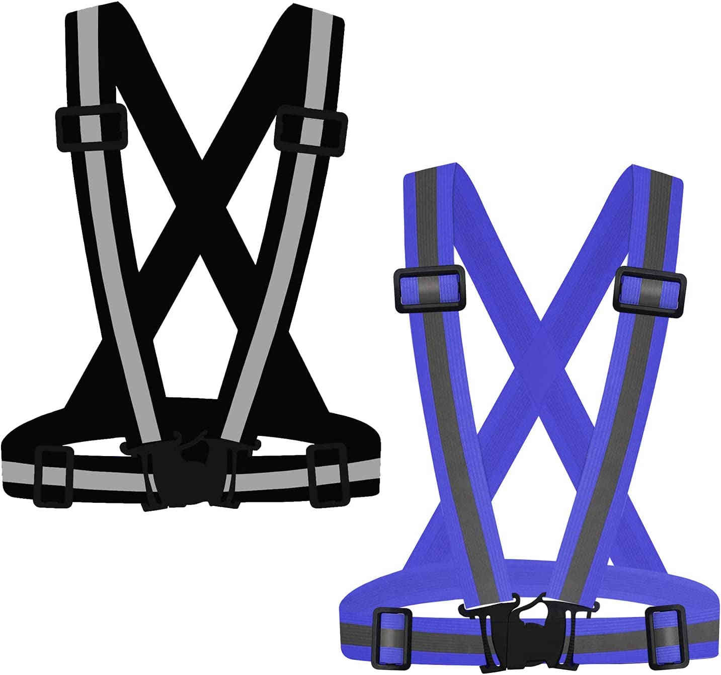 Running Reflective Vest Gear 2Pack - High Visibility Adjustable Safety Vest for Night Outdoor Activities