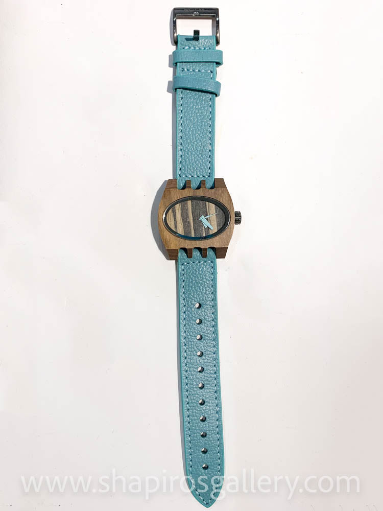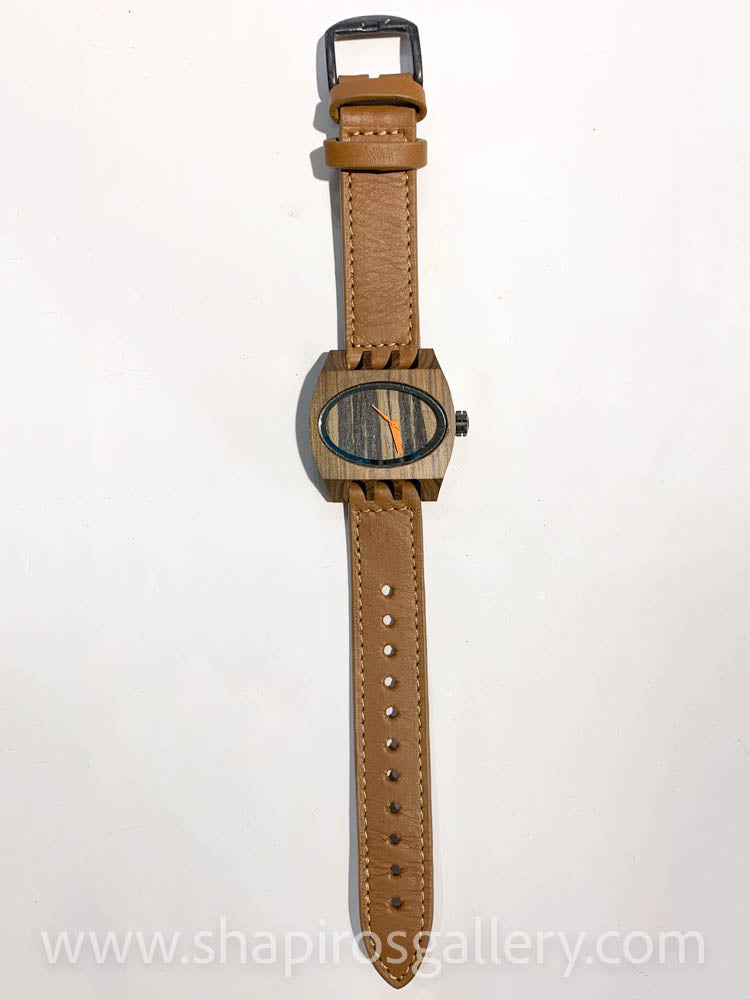 An octagon wood watch that keeps a classic traditional touch. The wood case has smooth edges giving the timepiece a sophisticated tone to the face of the watch. Volkano wood is complimented with details that form a polished unisex dial. This wrist watch combines wood face palettes, and exhilarating earthy browns tones plus uses a wide range of exotic woods. This watch has genuine leather for the strap and buckle closure. Case: Pui, TeakCase size: 47mm x 38mmWeight: 40g Band size: L 246mm x W 24mm Movement: Japanese Quartz by CitizenClasp: Pron