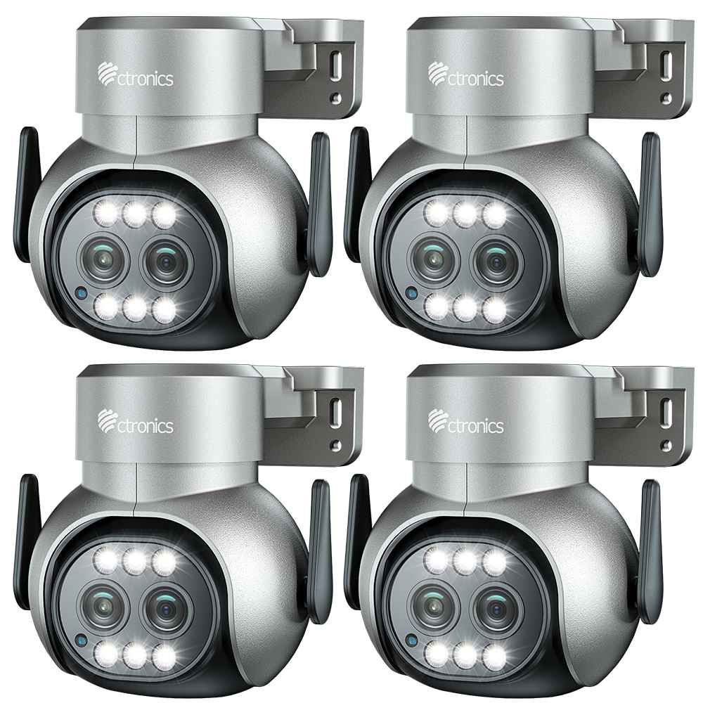 Dual Band WLAN and Remote AccessThe ctronics outdoor wifi security camera supports 2.4GHz and 5GHz wifi frequencies, providing a more stable network connection and faster data speeds.This wifi security camera supports 24/7 recording around the clock and stores videos on a micro SD card (up to 128GB, not included). You can view the surveillance screen anytime and from anywhere via your smartphone or computer.2.5K 4MP HD Resolution & 30m Color Night VisionThis 2.5K PTZ outdoor surveillance camera (Pan, Tilt, Digital Zoom) is equipped with 256