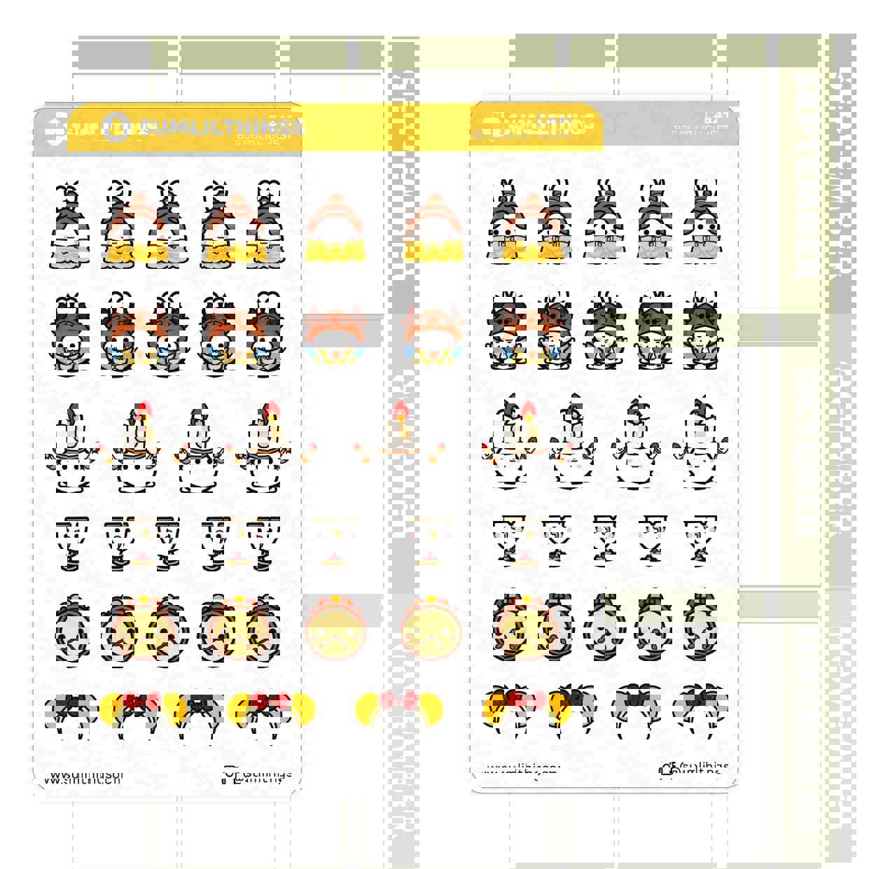 CONTENT: 12 stickers per sheetSHEET SIZE: 2.5 x 3.5MATERIAL: Matte sticker paperDESIGN: All designs are hand drawn by ©SumLilThingsPLEASE NOTE: Colors may differ on monitor screens due to different settings.