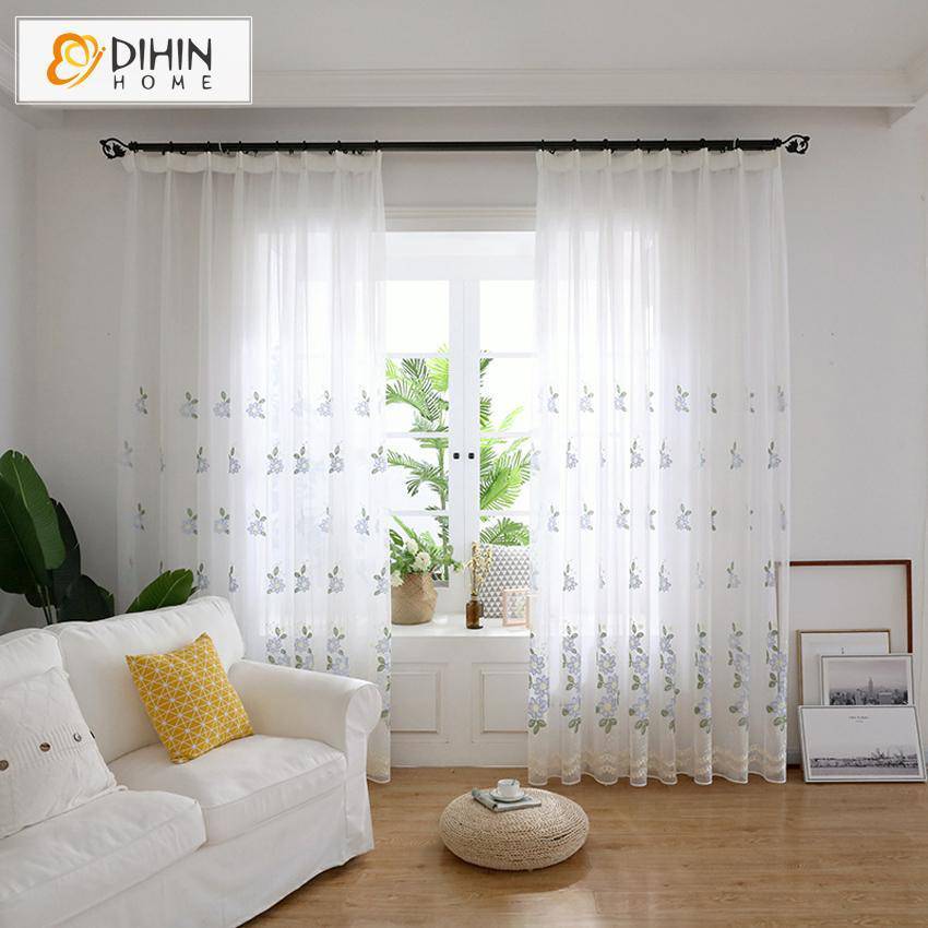 DIHIN HOME Garden Natural Pink Flowers Cotton Linen Embroidered Day Curtain