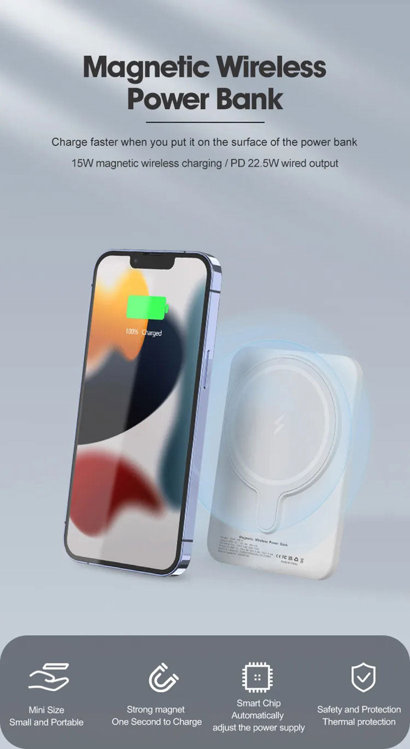 Introducing the DistinctInk Magnetic Battery Pack! This revolutionary wireless portable charger is the perfect travel companion for your iPhone 14/13/12 series. With a MagSafe-Compatible design, you can easily charge your phone without any cords or wires getting in the way. Plus, its slim and lightweight design makes it ideal for taking on the go - so youll never have to worry about running out of power again! Keep your device powered up wherever you go with this powerful and efficient battery pack charger. Design is printed directly on the ba