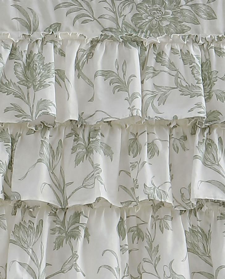 Introduce a touch of serene elegance to your home with the Natalie Ruffled Pole Top Valance from Laura Ashley. This beautiful window treatment features a classic floral toile pattern printed on a soft cotton cream background, creating a tranquil and inviting atmosphere in any room.