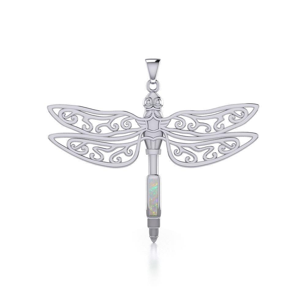 Ethereal Dragonfly Sterling Silver Pendant with Spiritual Gemstone by Peter Stone Jewelry