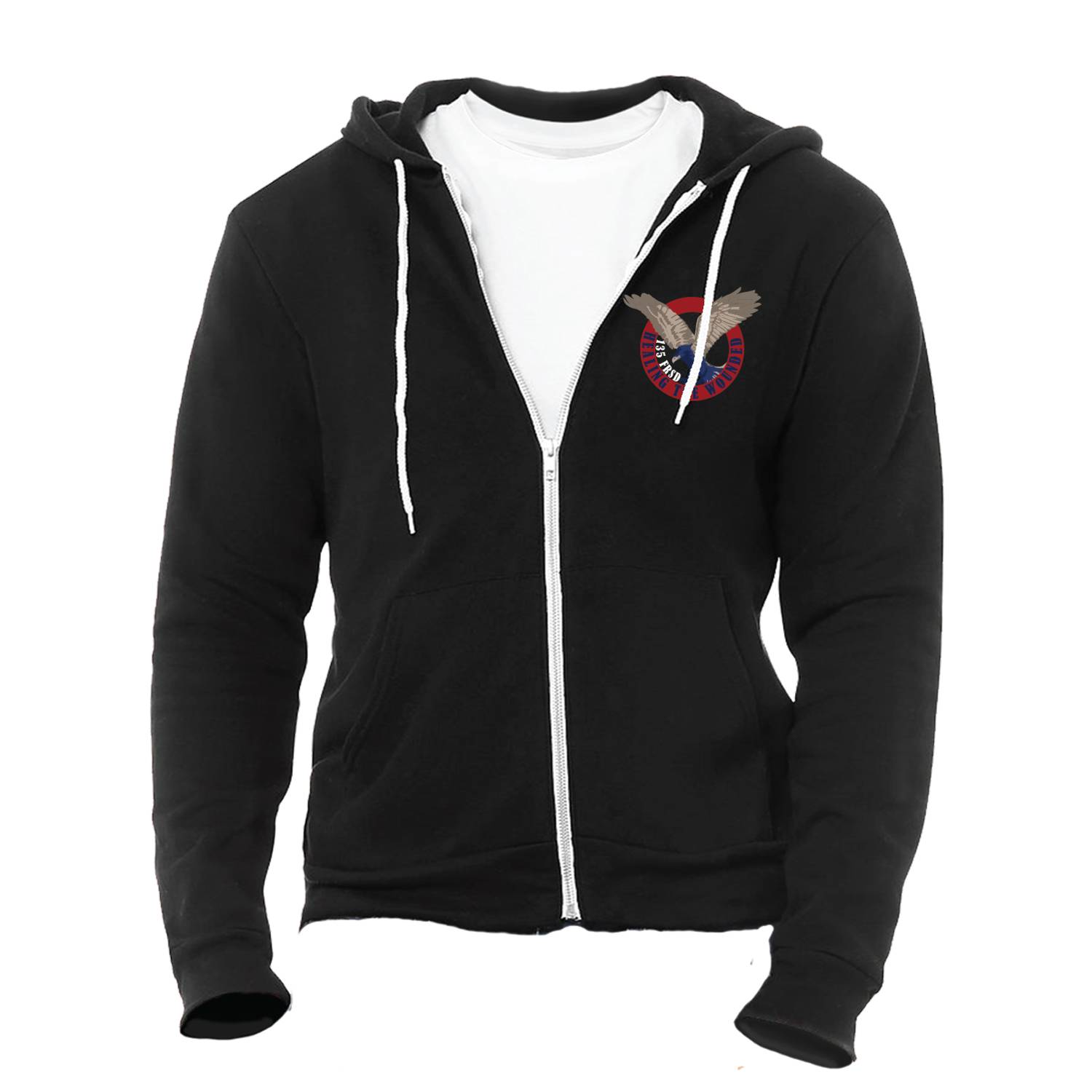 Awesome full-color embroidery work that will last those long days on the flight line. Features: Side-seamed. Retail fit. Unisex sizing. Full zip closure with white taping. Ribbed cuffs and waistband. Kangaroo pockets. White chord drawstring.Fabrication: 52% Airlume combed and ring-spun cotton 48% poly fleece, 32 single 7.0 oz. (Ath. Heather - 90% Airlume combed and ring-spun cotton, 10% poly)A staple for any military rotary-wing aviator savage with a need to represent his or her passion and culture via apparel.Brotallion. Providing military av