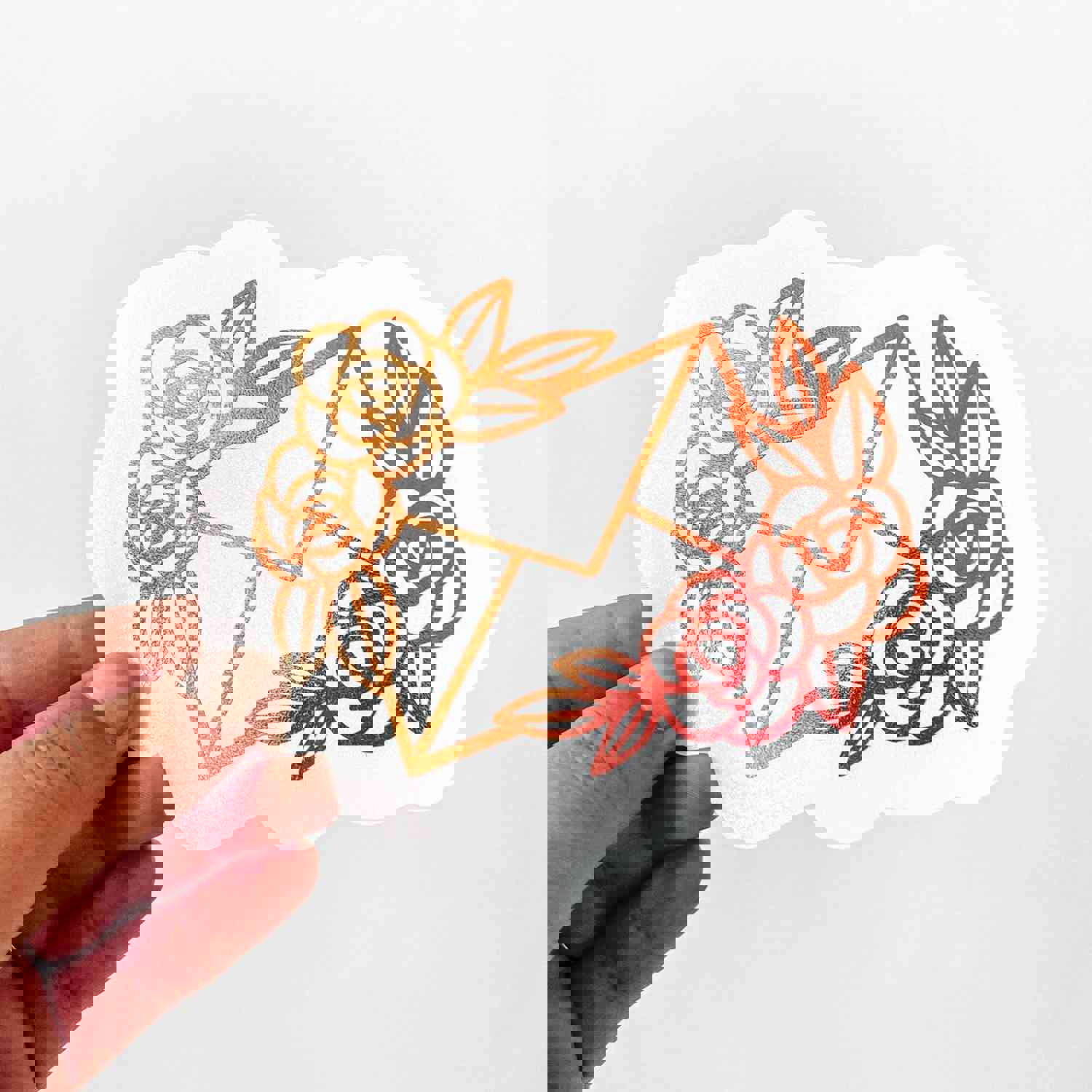 Apply this gorgeous flower line art decal to any smooth surface such as hydros, Yetis, journals, laptops, phone cases, mirrors, car windows, doors, and any other smooth clean surface!I have other flower designs! Check them out in my shop :)Please Note: The holographic colors change in the light and in different angles.For a better look at the holographic colors, see @sweethoneycombcrafts on Instagram**This is permanent high quality vinyl but due to the small intricacies of this particular design, be mindful that this is a delicate handmade item