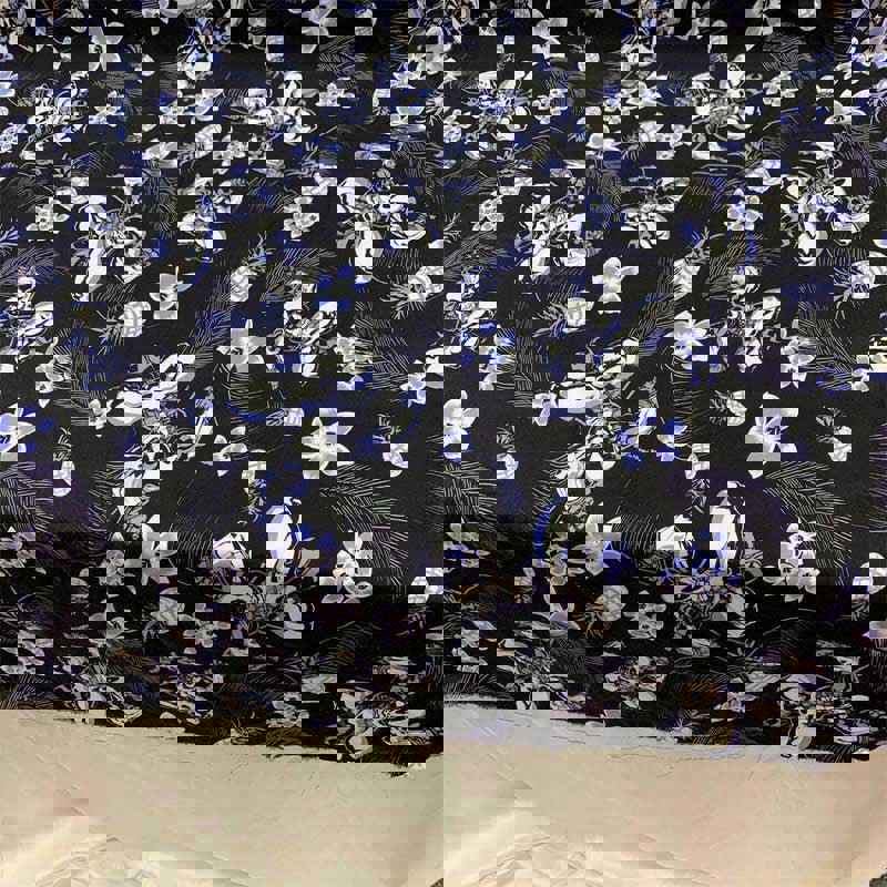 Floral Rayon Challis Small Blue Flowers Print Soft Organic Flowy Fabric