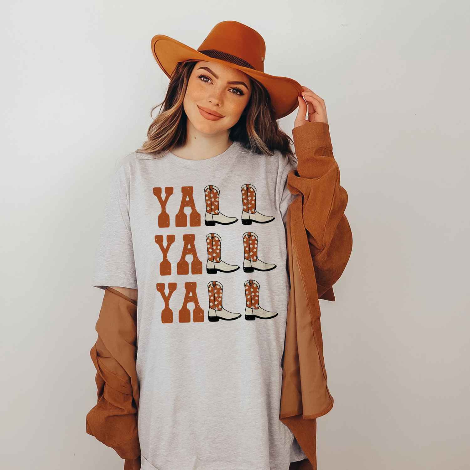 Super cute HOWDY western boots sweatshirt. Custom handmade to order. For an oversized graphic tee please size up!**Product Details:**- Unisex, crewneck sweatshirt- 50/50 cotton and polyester- For best fit and color choices, please refer to sizing and color charts in images**Care Instructions:**- Turn item inside out- Do not use bleach- Machine wash cold- Tumble dry on low setting- Do not iron on design- Do not dry clean**Processing and shipping times:**- Please allow 1-5 days for your order to be made. In most cases the item will be made same d