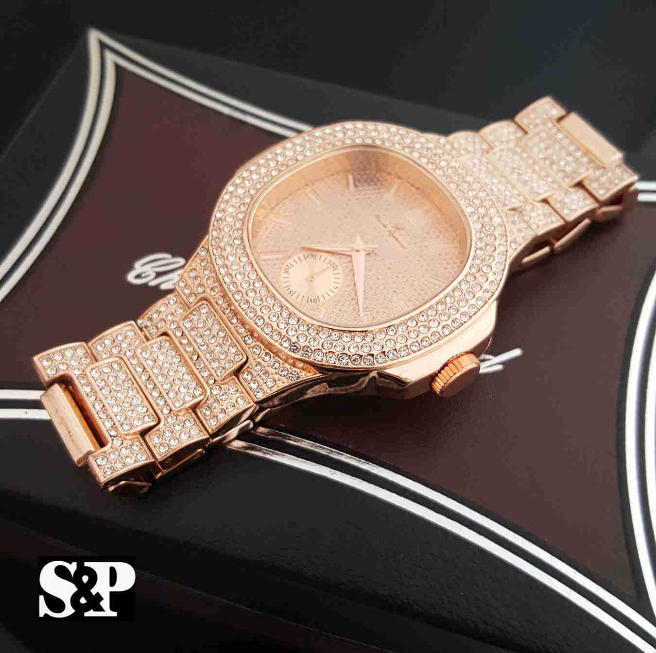 - BRAND NEW ICED OUT WATCH AND BRACELET SET (Stylishly unique look that is sure to demand attention. Comes with a matching bracelet that you can also mix and match with other jewelry and clothing.)- BLACK CUBIC ZIRCONIA (High quality AAA Stones that resemble genuine diamonds and showcases a luxurious and look.)