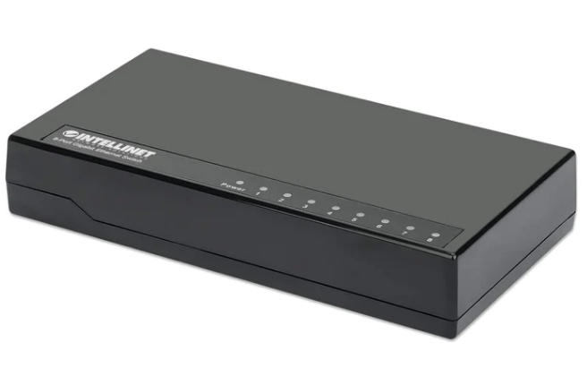 The efficient Intellinet 561747 IES-05GP, 5-Port Gigabit Ethernet Switch, Desktop Size, Plastic, IEEE 802.3az (Energy Efficient Ethernet), Black, is a compact switch with five Gigabit ports to expand your network in an instant.Features: Easy plug-and-play installation - simply power it up and start using itGreen Ethernet power-saving technology deactivates unused portsFive 10/100/1000 auto-sensing ports automatically detect optimal network speedsSupports any combination of 10 Mbps, 100 Mbps or 1 Gbps network devicesSwitch fabric of 10 GbpsSuppo