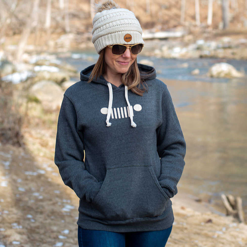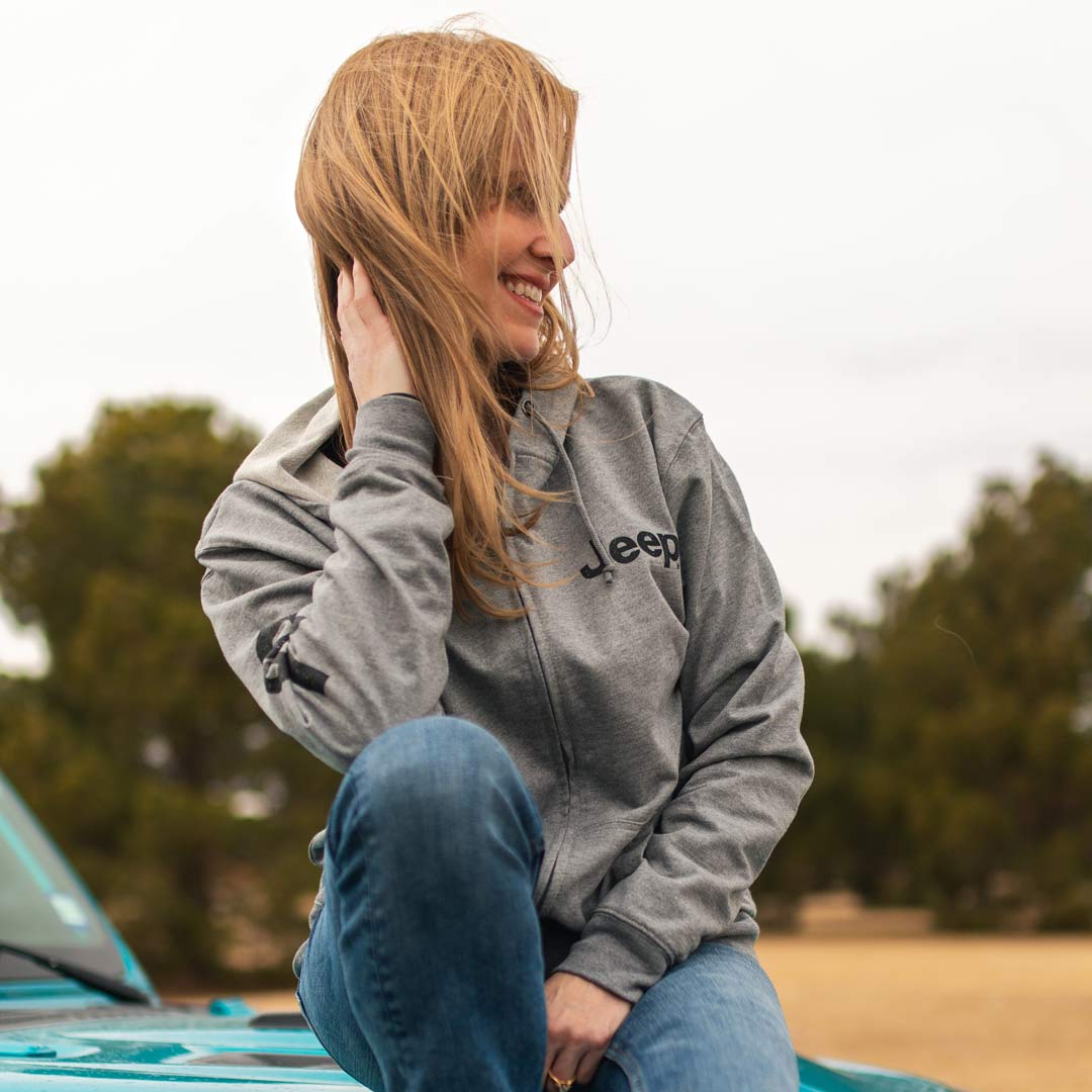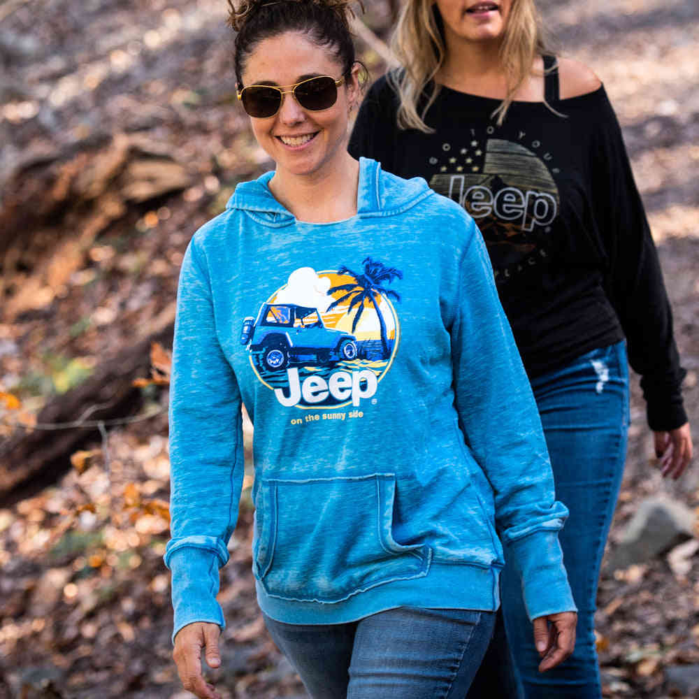 Our best selling t-shirt is now available in a super-soft womens hoodie! The Jeep® Catch a Wave” sweatshirt is designed with a distressed look to compliment your laid-back lifestyle. This lightweight pullover sweatshirt is perfect for tying around your waist and throwing on when the sun goes down. This hoodie has a worn, cozy look to accompany you on all your Jeep® adventures. RUNS SMALL - Check Model Info & Size Chart 55% Cotton / 45% Polyester Burnout Fabric7 oz Fabric, Acid-Washed with Silicone FinishCut Open Neck DetailExtra Long Cuff