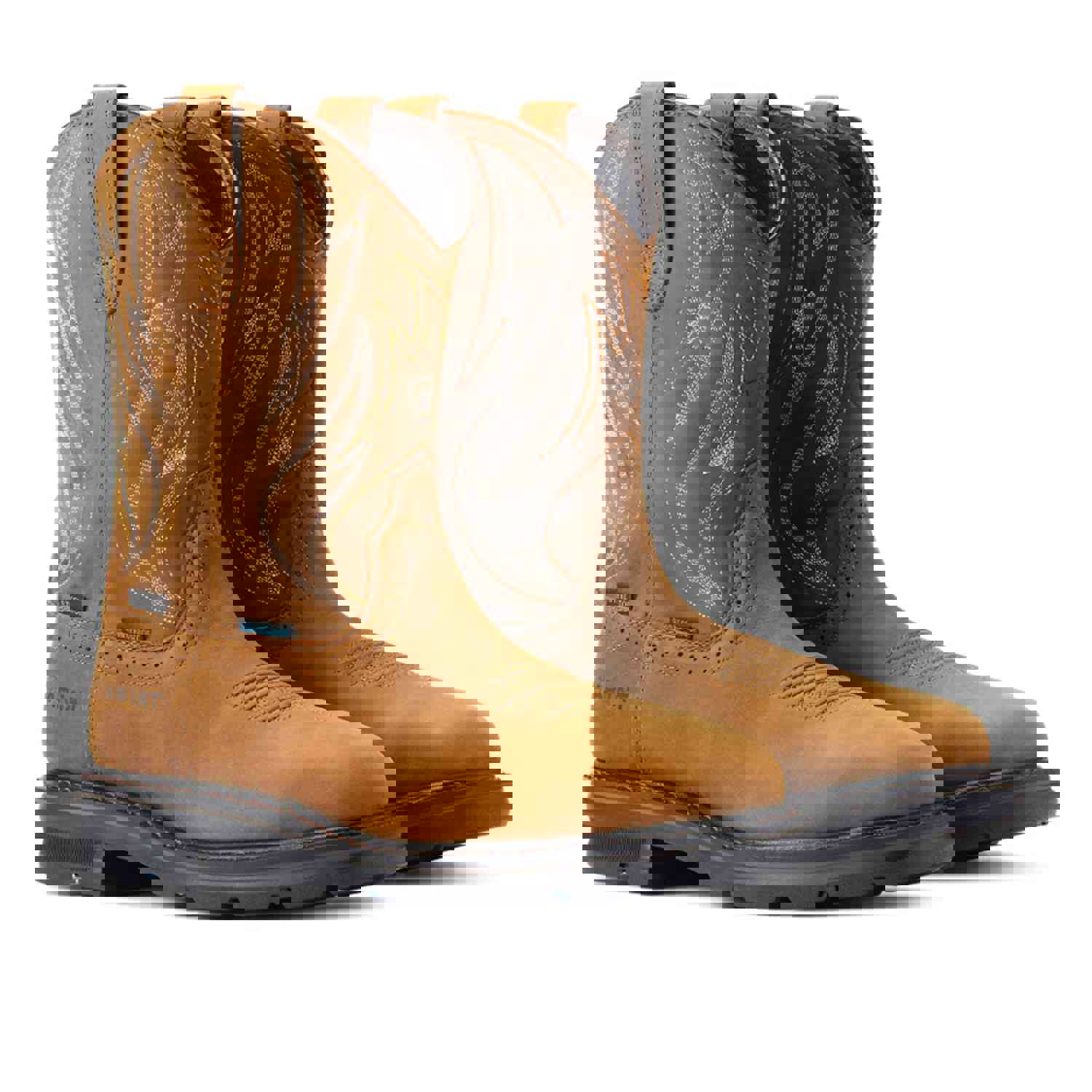 The Juneau Romeo Waterproof Carbon Toe Work Boot in Black/Black from Keen Utility.Rugged and ready to go, the Juneau pull-up work boot for men combines comfort, ease, and durability.American Built using the finest materials from around the worldLeft and right asymmetrical, non-metallic carbon-fiber toes offer unobtrusive fit and are 15% lighter than steelKEEN.DRY waterproof, breathable membraneElectrical hazard (EH) or Electric Shock Resistant (ESR) footwear provides a secondary source of protection incase accidentally coming into contact with