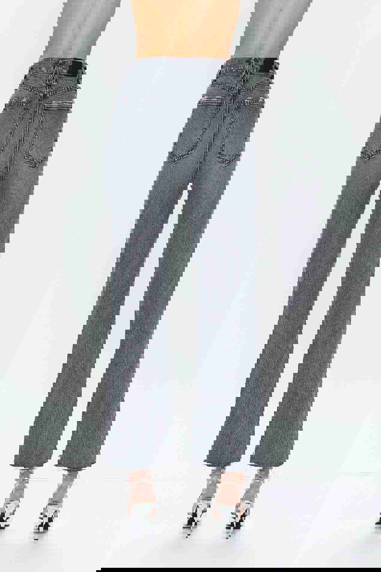 High rise waist with a boot cut leg silhouette and cropped ankle hem. Crafted from our best selling comfort-stretch denim. Offered in a medium-dark blue wash with distinct whiskering and fading, finished with a pintucked front seam accent. 99% Cotton / 1% SpandexRise: 11Inseam: 27Leg Opening: 16 1/2Model is 5’9” wearing size 26