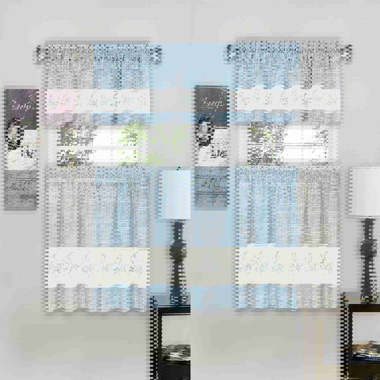 Live Laugh Love 3-Piece Kitchen Curtain Set, Light Blue, Tiers 58x36, Swag 58x14 Inches