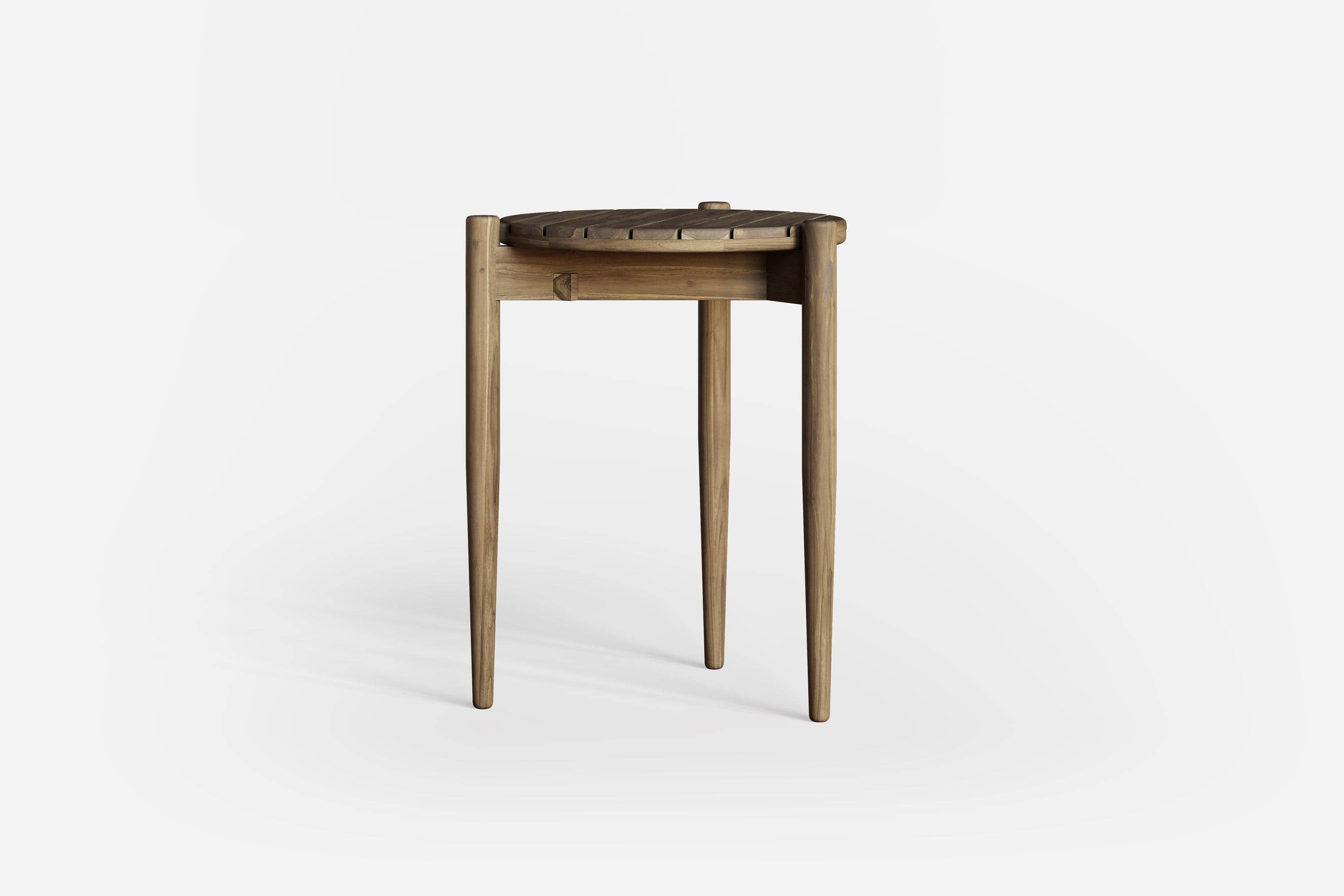 Compact. Sleek. Modern. The Manzanillo Round Side Table is perfect for small spaces. Handcrafted from wood grown in reforestation projects, this side table fits is an ideal end table that works well in any space. Pair with the Manzanillo Round Coffee Table. Dimensions:Dia: 18 H: 16100% Solid sustainably sourced hardwood.Intended for Outdoors.Hospitality Grade.Ships fully assembled.Handcrafted in Nicaragua.Over time, teak naturally weathers into a silver-gray patina color. This weathering process depends on the wood’s exposure to the elements