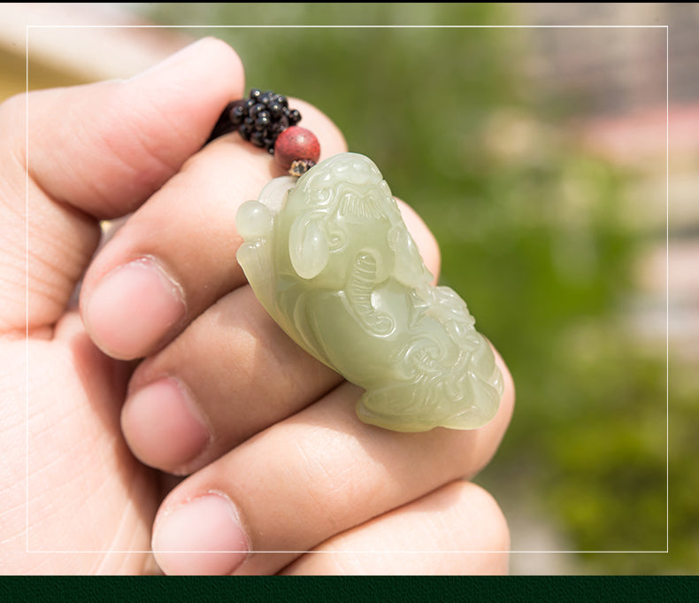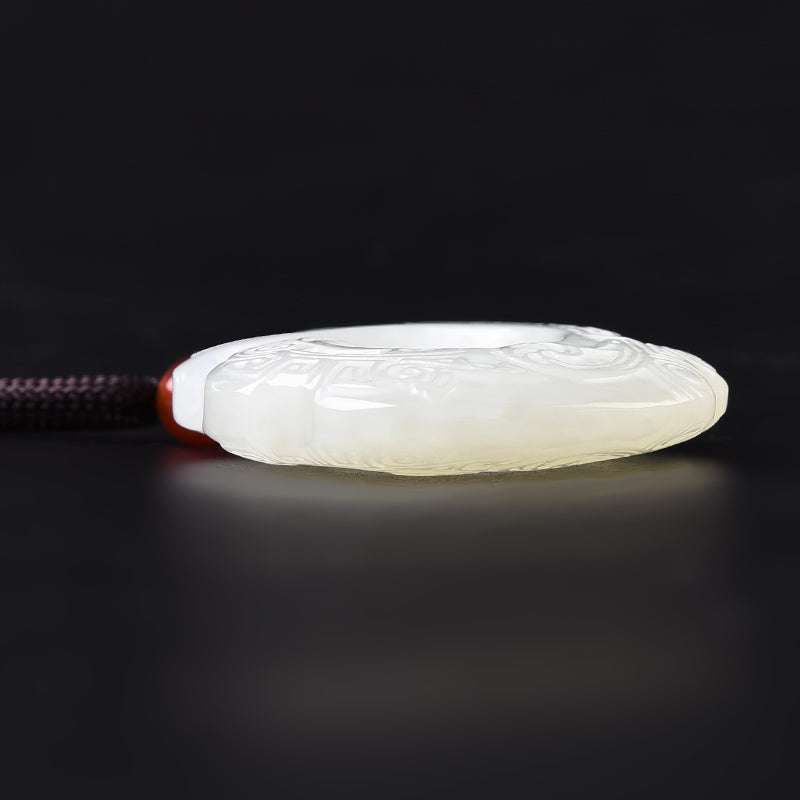 Natural Hetian Jade Pendant Pixiu Peace Buckle with Certificate - White Jade Unisex Jewelry (4-19)