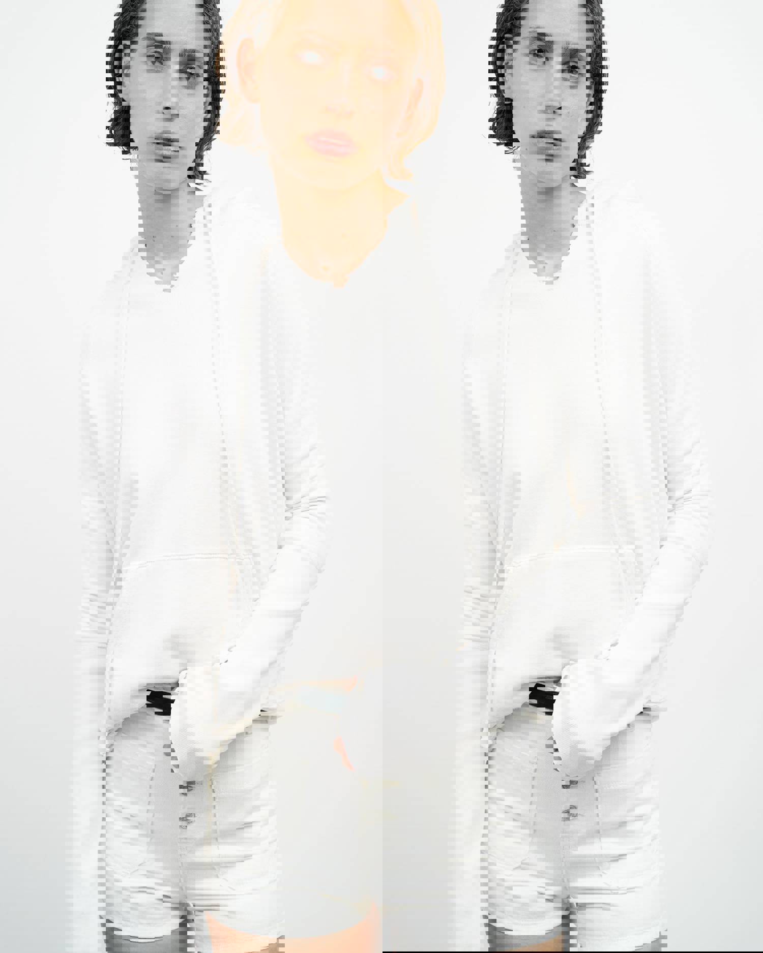 Artistic processes give the Nili Lotan Callie Zip up Hoodie a slightly distressed, vintage feel. No two are alike. Complete with drawstrings and front pouch pockets, its been designed for a casual, relaxed fit with a full fitting sleeve.