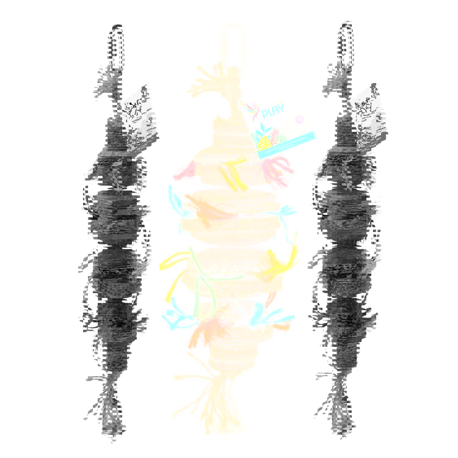 Prevue Pet Products Naturals Coco Hideaway with Ladder Bird Toy 62801 is handmade from 100% natural, sustainable, materials providing your bird with mental stimulation and rugged physical play. Made with Hevea wood branches, coconut shell, and natural sisal rope this bird toy encourages foot and beak exercise. Toy connects easily to cage with quick-link attachments and is hand made – actual measurements may vary slightly. As always, supervise birds at play. Our Naturals Coco Hideaway with Ladder bird toy is approximately 18 1/2” Long (link to l