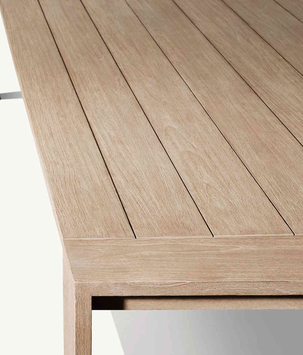 ModelRH-ST033Size41¼W x 27½D x 11HMaterialSolid teak/aluminumColorCustomizedBrandRHdescriptionMario Ruiz presents a streamlined, harmonious composition in Santos. Generous in proportion and rigorous in profile, the sleek frame makes a contemporary statement, with slender channels creating rich texture and dimension.