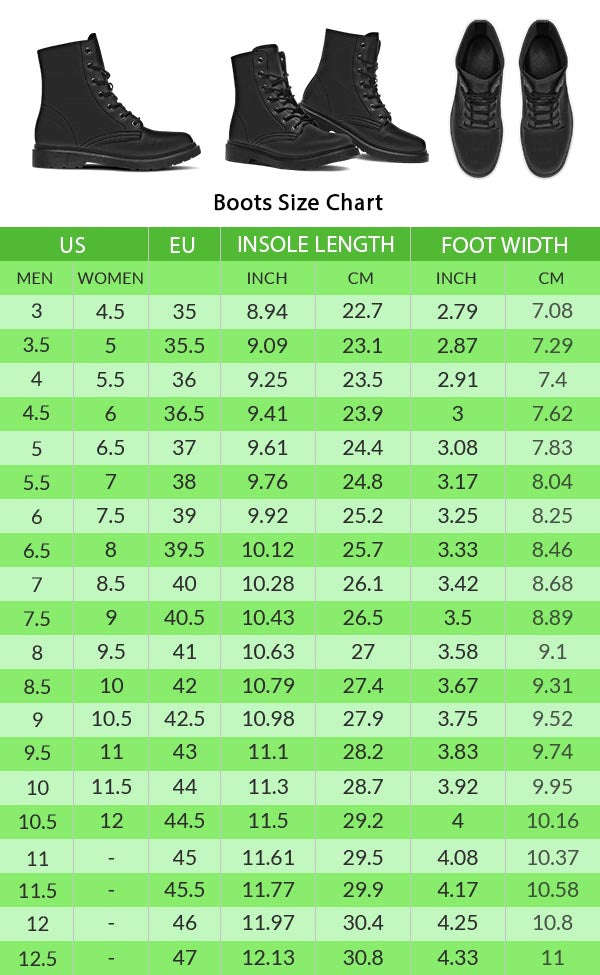 - Custom printed boots- Amazing colors and print quality- High-quality microsuede- Premium synthetic wool lining- Flexible rubber outsole- Real stitching on the outsole for exceptional durability- Steel shank for maximum support- Memory foam insoles for maximum comfortHandcrafted On Demand Just For You!Orders Estimated Delivery Time: 2 - 4 weeks