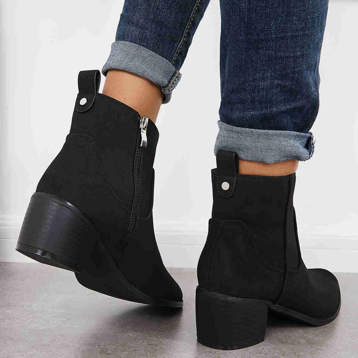 Chunky Block Heel Ankle Boots with Pointed Toe and Side Zipper