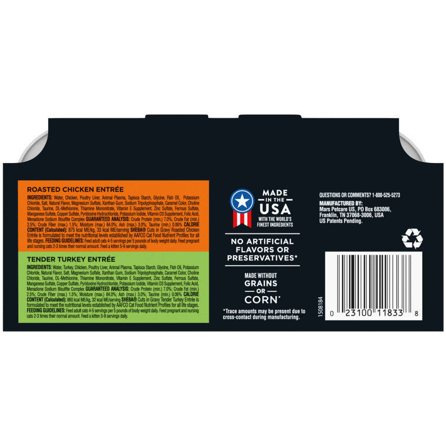 ADDITIONAL FEATURESProduct Gross Weight: 2.9700 lbProduct Net Weight: 2.9700 lbProduct Height: 6.50 inProduct Length: 8.06 inProduct Width: 8.25 inFlavor: Whitefish; Tuna; SalmonINGREDIENTSIngredients: SALMON: Water;Salmon;Chicken;Poultry Liver;Animal Plasma;Tapioca Starch;Glycine;Potassium Chloride;Fish Oil;Natural Flavor;Magnesium Sulfate;Xanthan Gum;Salt;Sodium Tripolyphosphate;Choline Chloride;Calcium Carbonate;Taurine;DL-Methionine;Thiamine Mononitrate;Vitamin E Supplement;Iron Oxide Color;Zinc Sulfate;Ferrous Sulfate;Manganese Sulfate;Cop