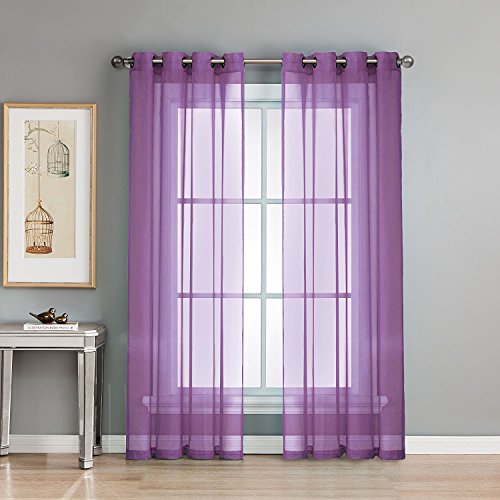 About this item ☀HIGH-GRADE MATERIAL. Luxurious 100% polyester voile fabric. We are known for its durability & quality control. ☀SIZES TO FIT EVERY NEED. Sheer Window Curtain Panels measure 52 wide and are available in lengths of 45,63, 84, 95. ☀THE RIGHT BALANCE OF PRIVACY AND LIGHT. Smartly allowing natural light flowing into your room, while still providing privacy. Sheer curtain panels keep your spaces bright and cheerful without worrying about visibility from outside. ☀NICE DESIGN. Make a pretty soft and natural look to your windo