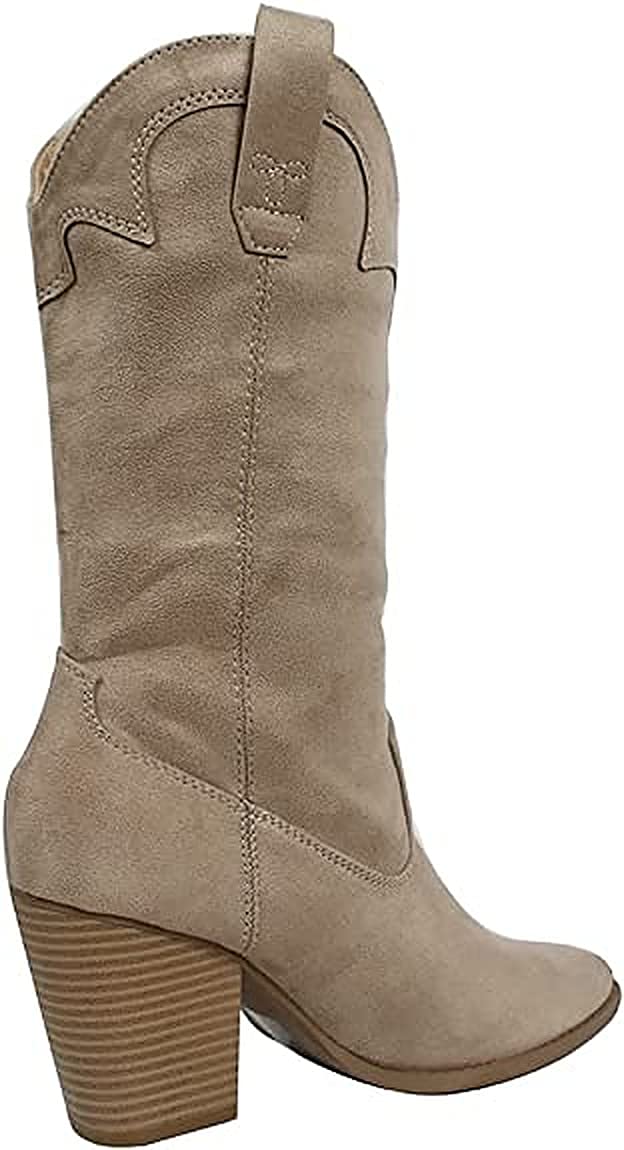 Women's Pointed Toe Western Ankle Boots with Chunky Heel