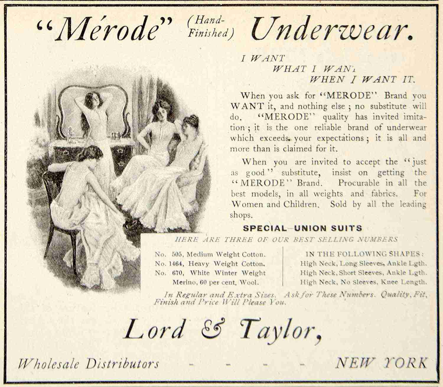 1906 Ad Merode Women's Cotton Underwear by Lord & Taylor