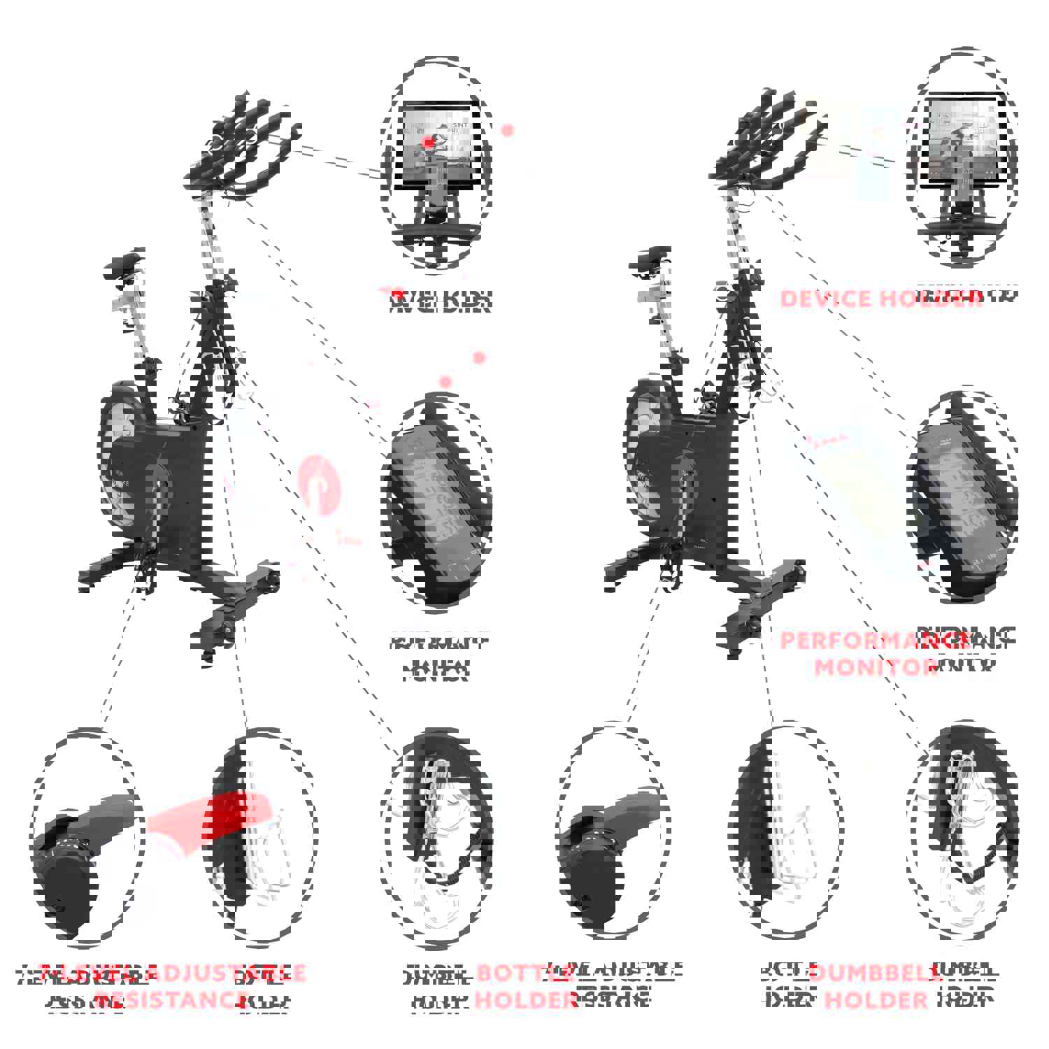 Train like a champion with unlimited resistance on the SF-B2729 LX TORNADO Air Bike by Sunny Health and Fitness. The newest Tornado Air Bike is BIGGER, STURDIER, and MORE Durable for the toughest workout. Dimensions: 55L x 23.5W x 49H inches. The greater your speed and force the more resistance this fan bike can make! The commercial-grade oversized 27.5-inch fan wheel drives unlimited air resistance as you pedal forward with heavy momentum. The stylish red paddles are enclosed in an upgraded fan cover guard to protect accidental dirt and debris