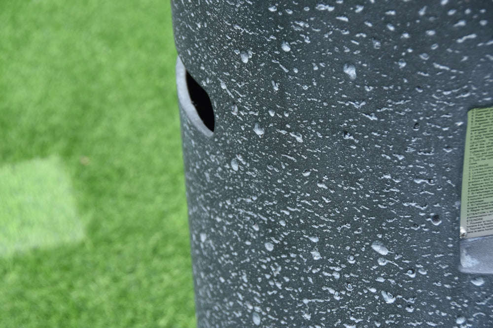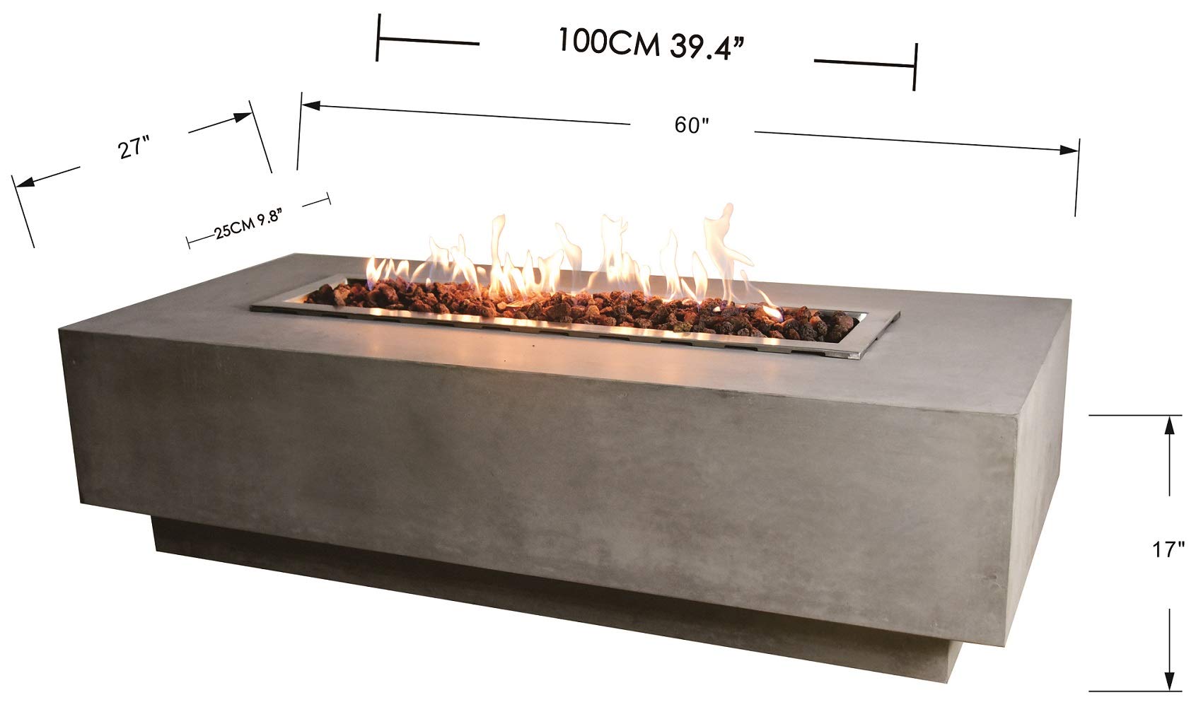 The Tramore outdoor liquid propane fire pit table is the perfect fire pit table for your backyard. Chill out and relax with the Tramore fire pit on the cold winter or chilly summer nights. The Tramore propane firepit table will be the new highlight of your home where you and your friends gather around and enjoy the great outdoors. Comes with PVC cover, 13.2 lbs. lava rock, liquid propane regulator and hose and electronic ignition with auto safety shut-off.Product Specifications:Model Number: OFG132 Body construction: Glass-fiber reinforced conc