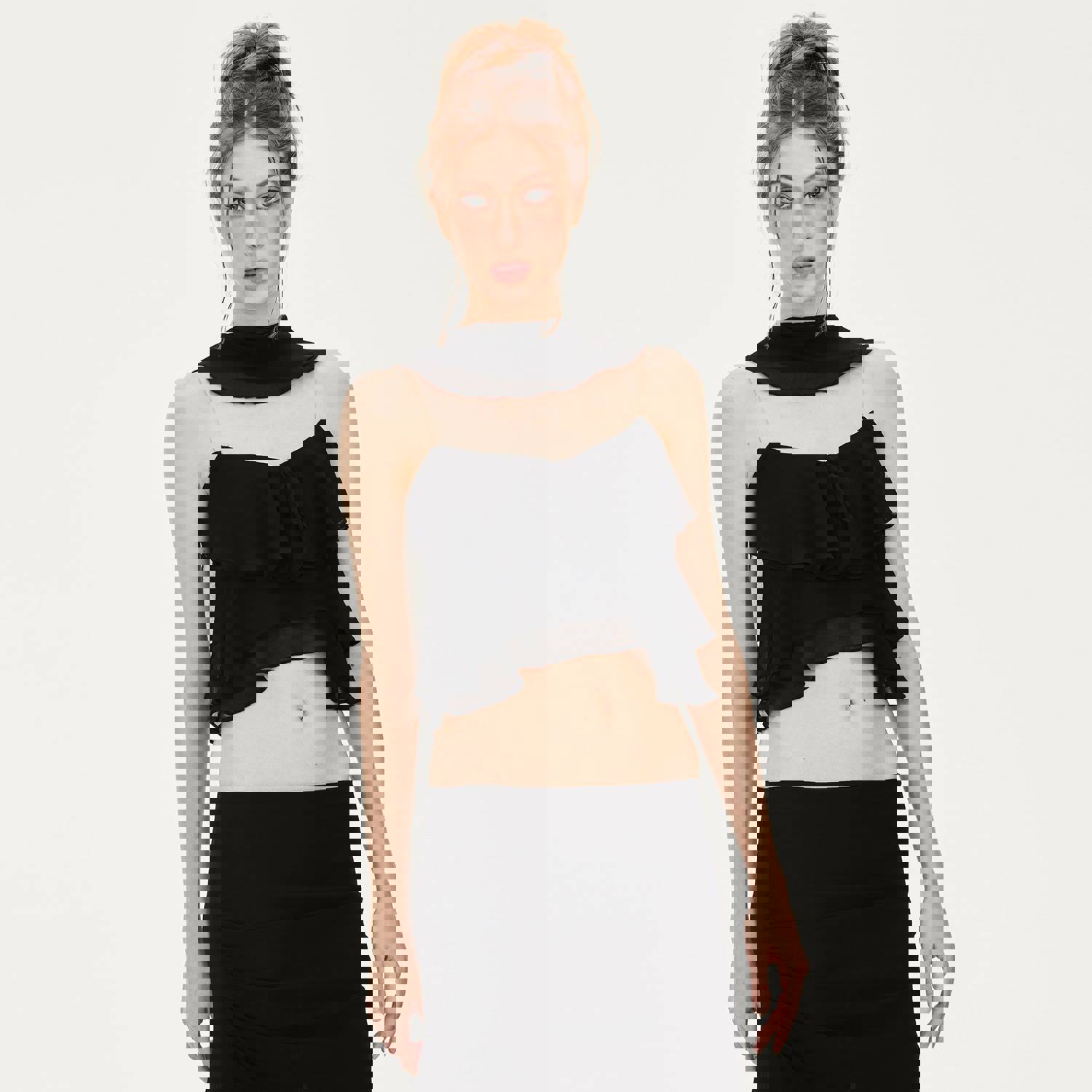Avril Ruffled Chiffon Sleeveless Top in Black