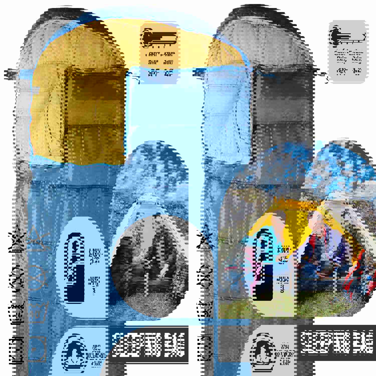 Ultralight 3 Season Sleeping Bag for Hiking, Camping & Outdoor Activities - Blue