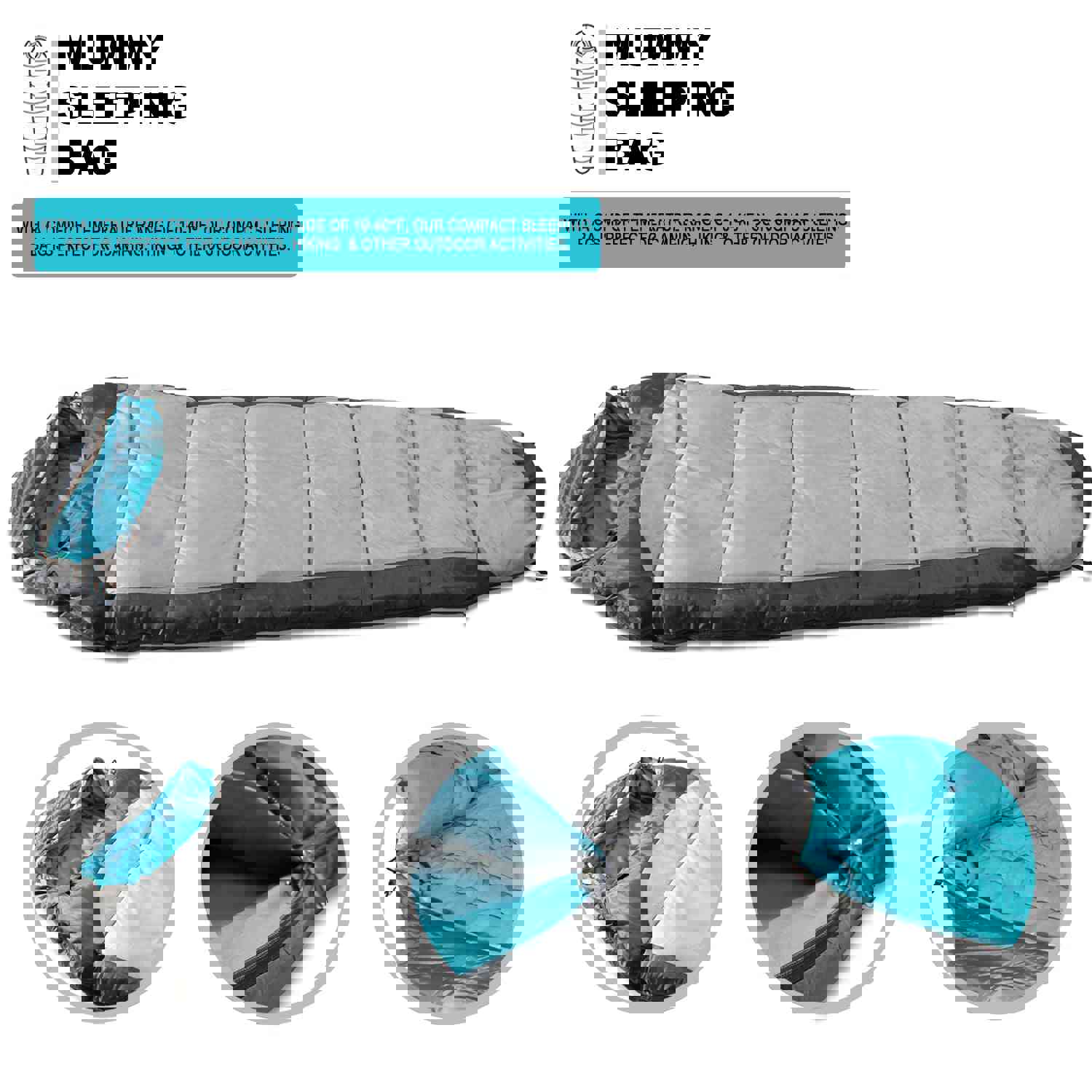 3 Season Ultralight Sleeping Bag for Hiking, Camping & Outdoor Activities with Compression Bag - Grey