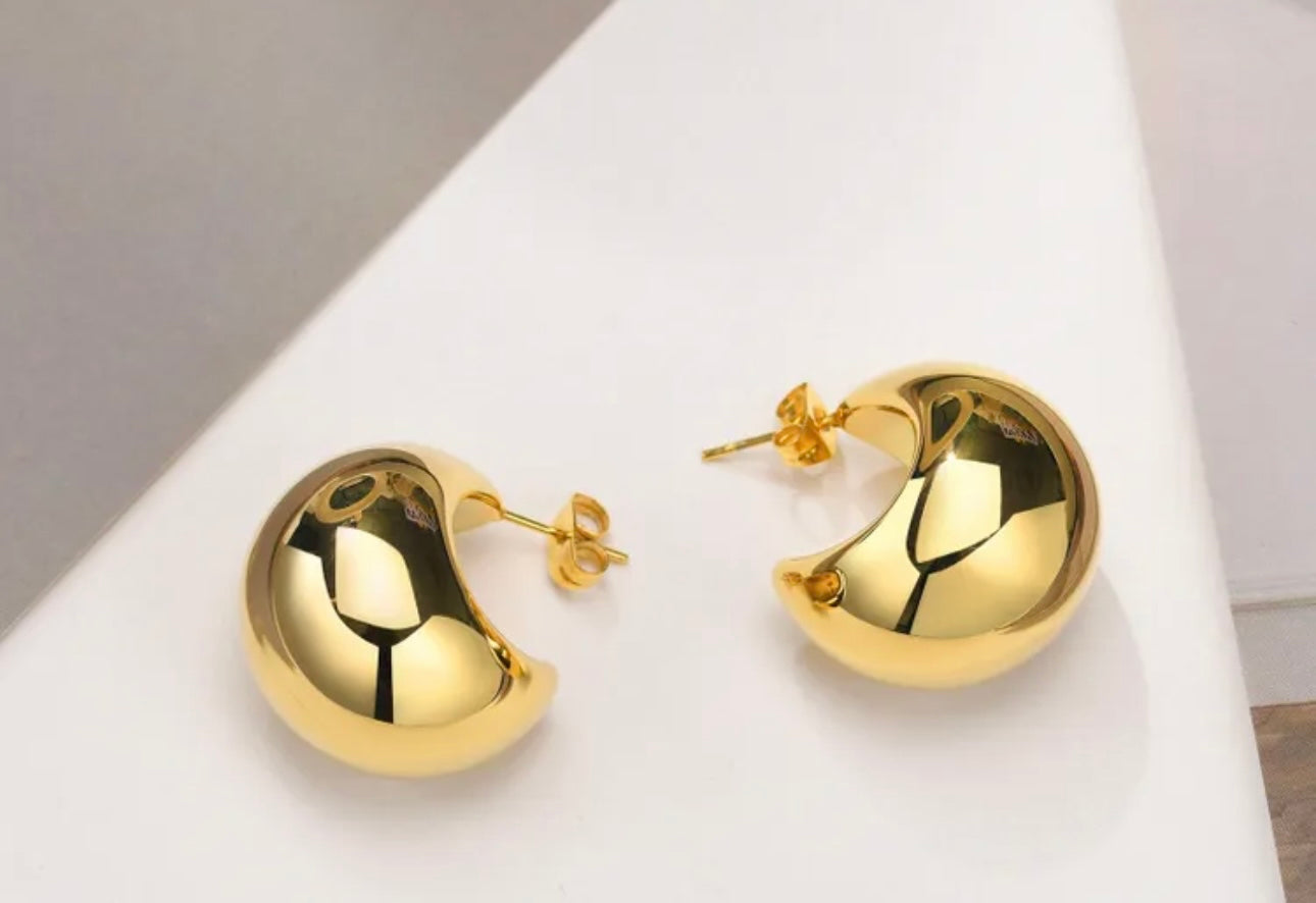 Golden Big Hoop Earrings - Korean Geometry Metal Drop Earrings for Women